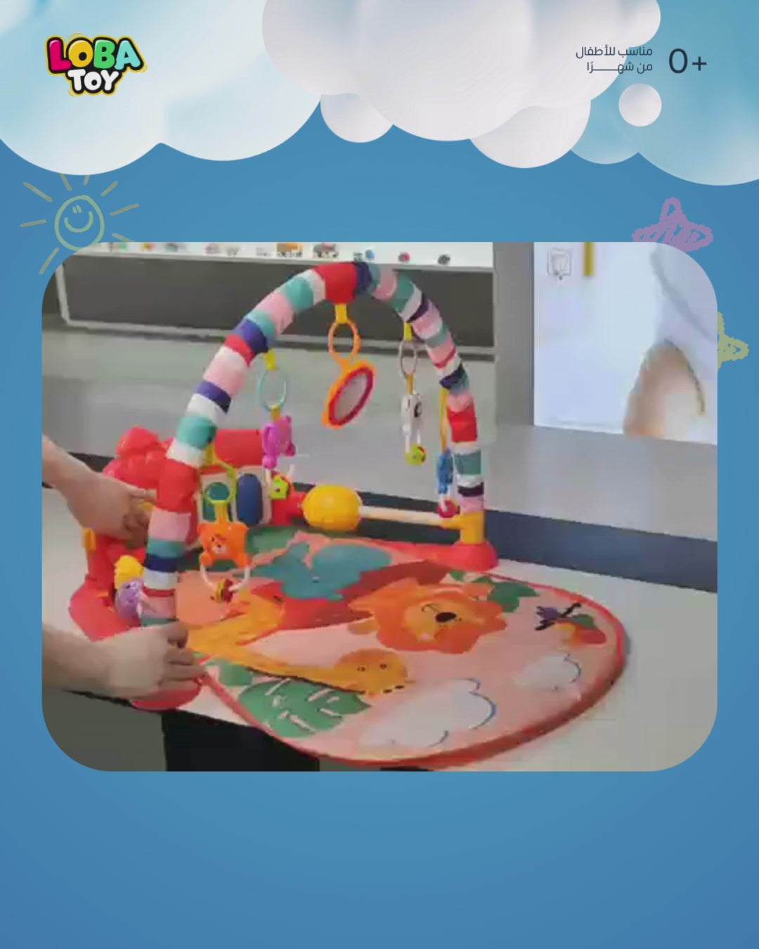 ثلاثة في واحد: سجادة، قوس ألعاب قابل للفصل، وبيانو يعمل بالرّكل أو اللمس، ما يوفر تنوعًا في وضعيات اللعب، الاستلقاء، والجلوس